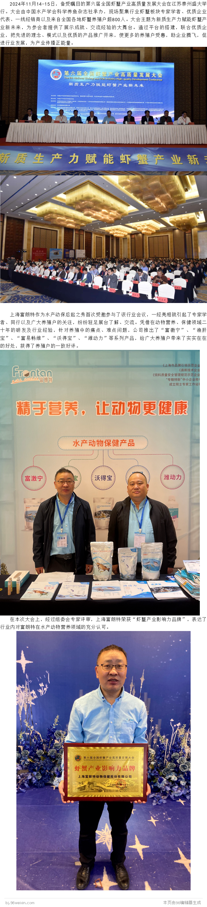 富朗特參加“第六屆全國蝦蟹產業高質量發展大會”